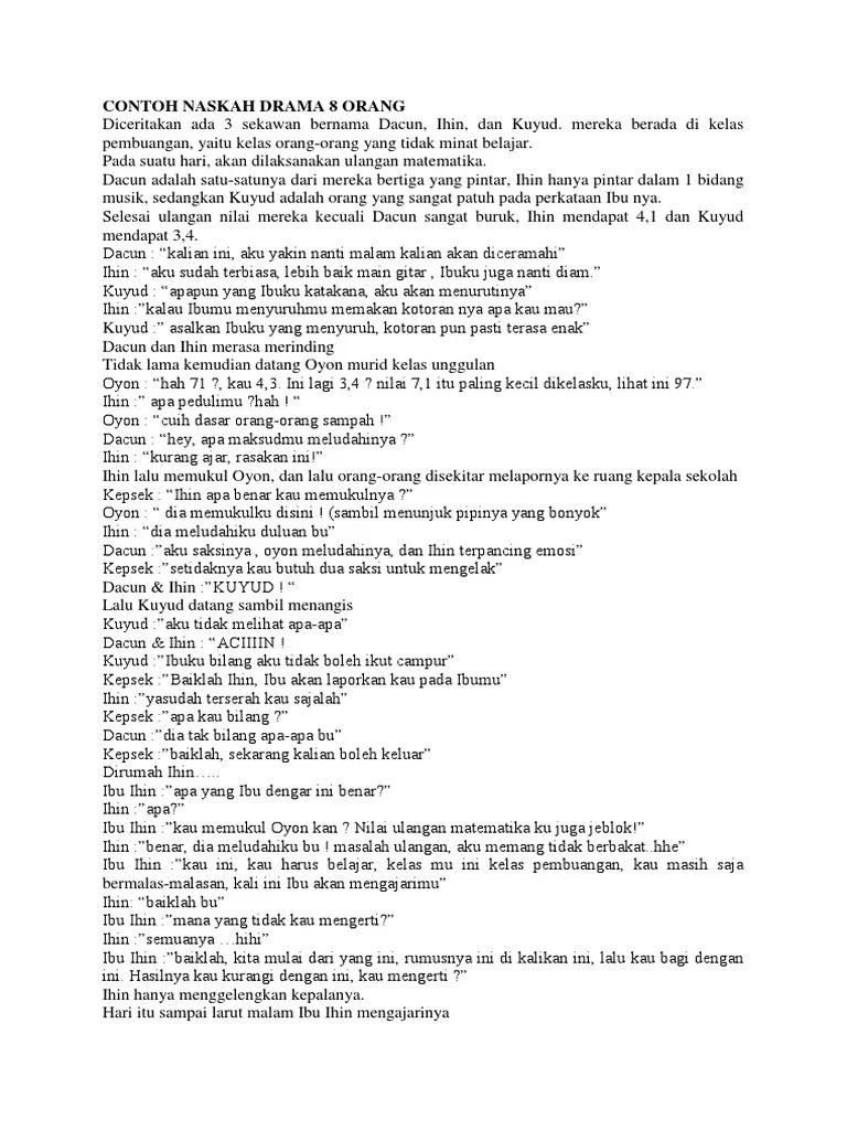 Naskah drama 4 orang tentang lingkungan sekolah. Teks drama anekdot lucu 6 orang . Doc naskah drama contoh pelaksanaan demokrasi fathiah. Contoh naskah drama contoh teks drama naskah drama 4 orang. Para pemain drama 4 orang.
